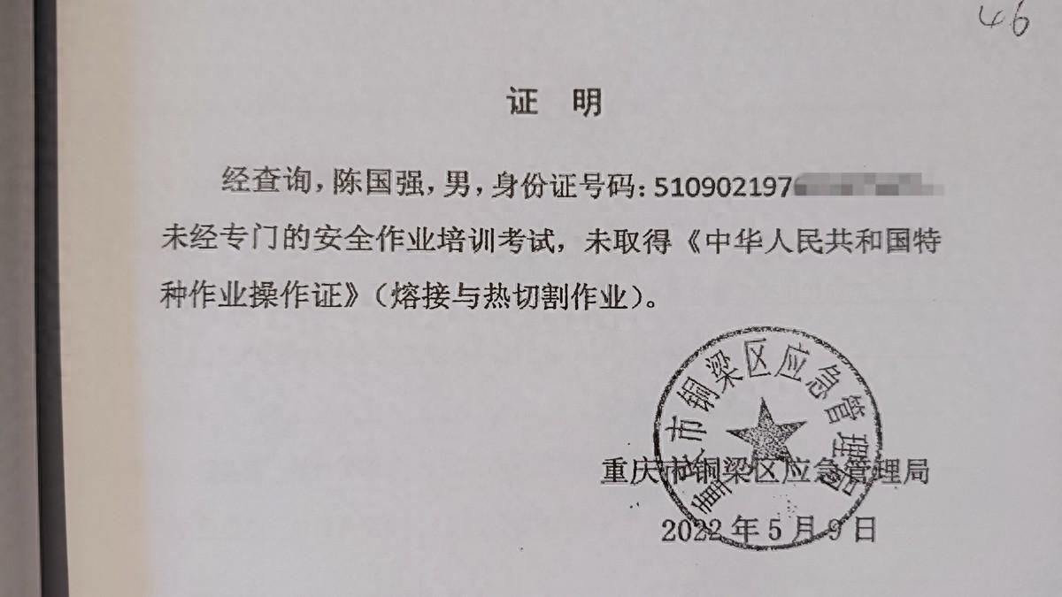 第二关于事故认定是由于中标业主聘请了无特种行业操作证的工人操作造成燃爆事故的问题。夏支队长认为当事人向记者提供工人的特种行业操作证属于案发时已逾期未年检的情况,也应当作为无证操作对待。