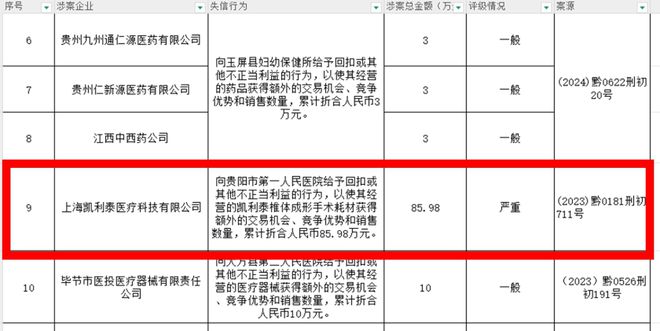 凯利泰行贿金额最高(截图)