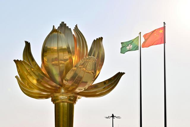 澳门特别行政区政府在金莲花广场举行升旗仪式,庆祝澳门特别行政区回归祖国25周年。
