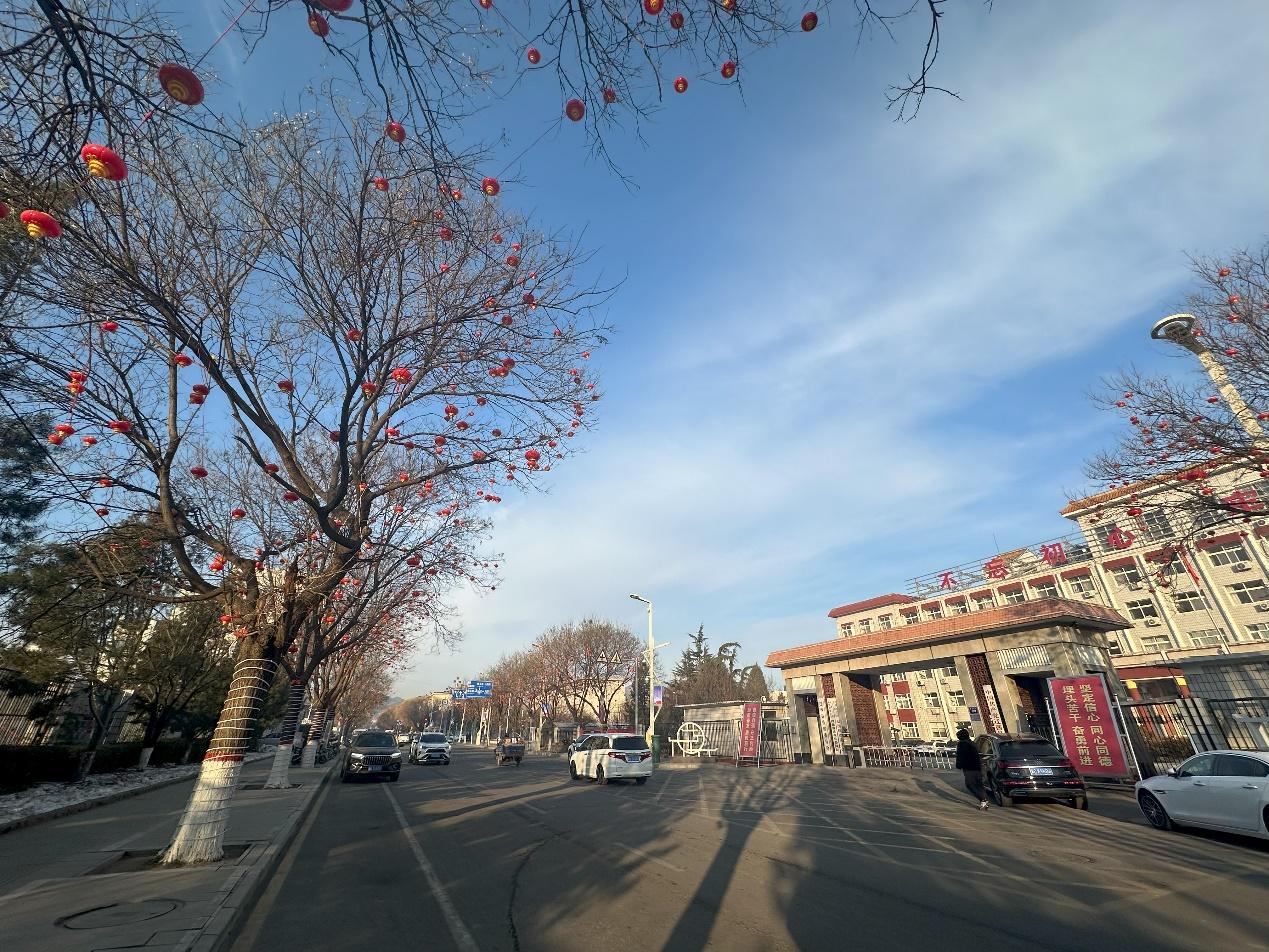 (迁西县委门前,在迁西县城多条街道的树上都挂着满树的小红灯笼。李微敖/摄)
