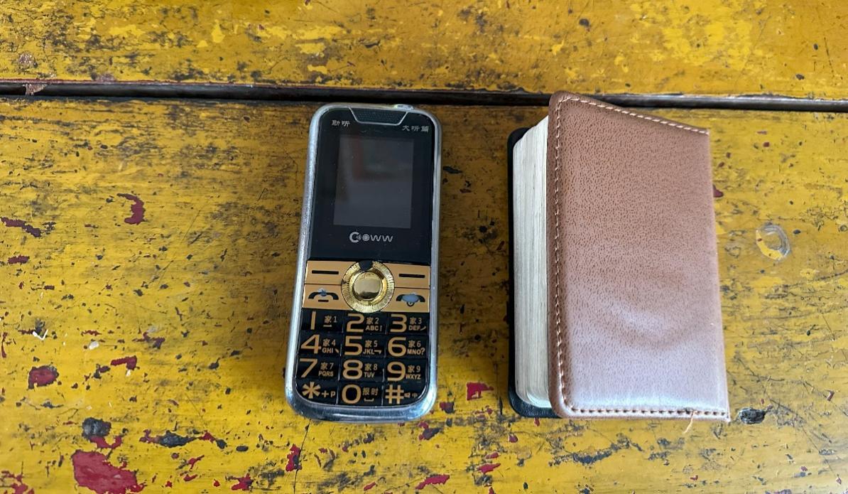 (马树山日常所用的手机和通讯录,李微敖/摄)