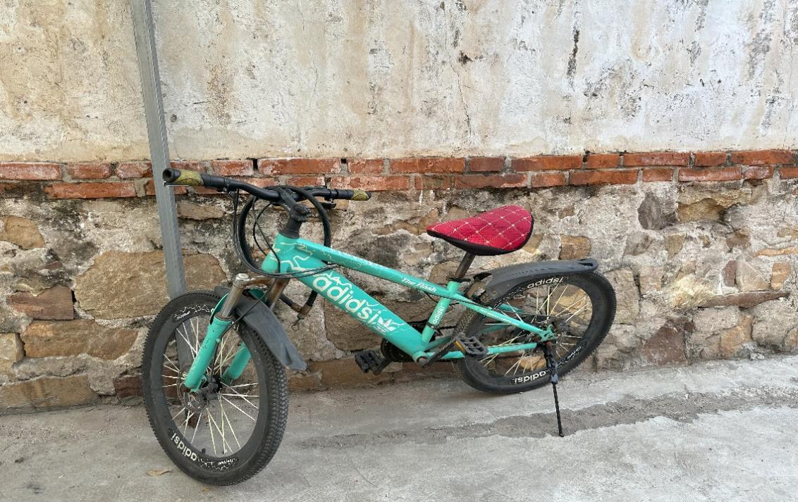 马树山的两轮自行车,就靠墙停在屋子外,车已经比较破旧了。这辆自行车原来是他外孙女骑的,后来给了他,“有一回他说这车踩不动了,我就给了50块钱给他,让他去修一修”。马树山的妻子说。