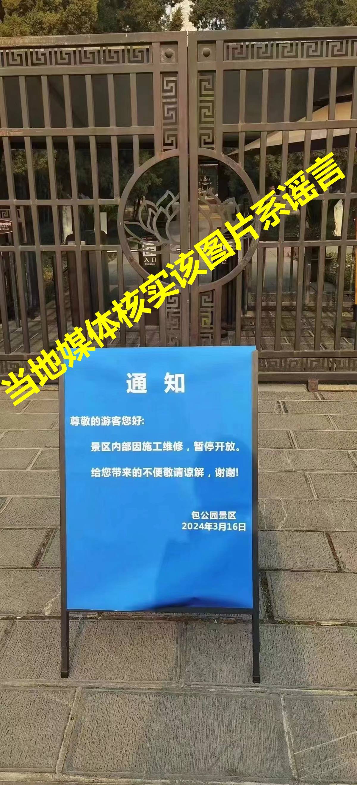 3月17日下午,大众新闻报就网传图片内容致电开封包公祠旅游开发有限公司,电话暂无人接听。据大河报开封新闻消息,网传图片系谣言,包公祠正常开放。