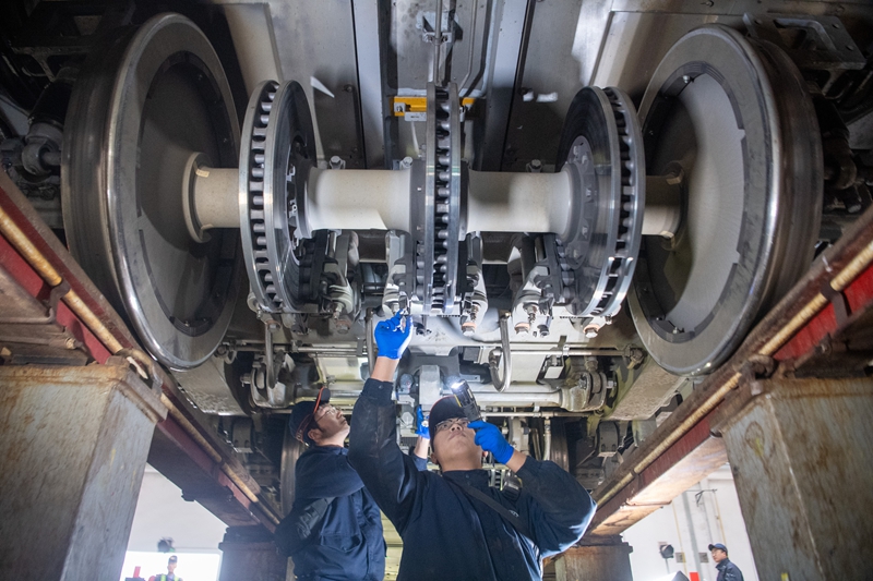 在山西,国铁太原局太原车辆段动车所临修库里,动车组机械师运用轮对踏面故障诊断装置,对动车组走行部进行检查;在贵州,南方电网兴义供电局组织运维人员,深入车站、客运站和高速公路服务区等开展用电检查;在四川,国铁成都局成都工务段川青铁路沿线,工人们运用双轨探伤仪,对钢轨“把脉问诊”……